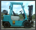 Empilhadeira contrabalançada à combustão, da marca Mitsubishi, modelo FG15, movida a GLP, com capacidade para 1.500 Kg.
